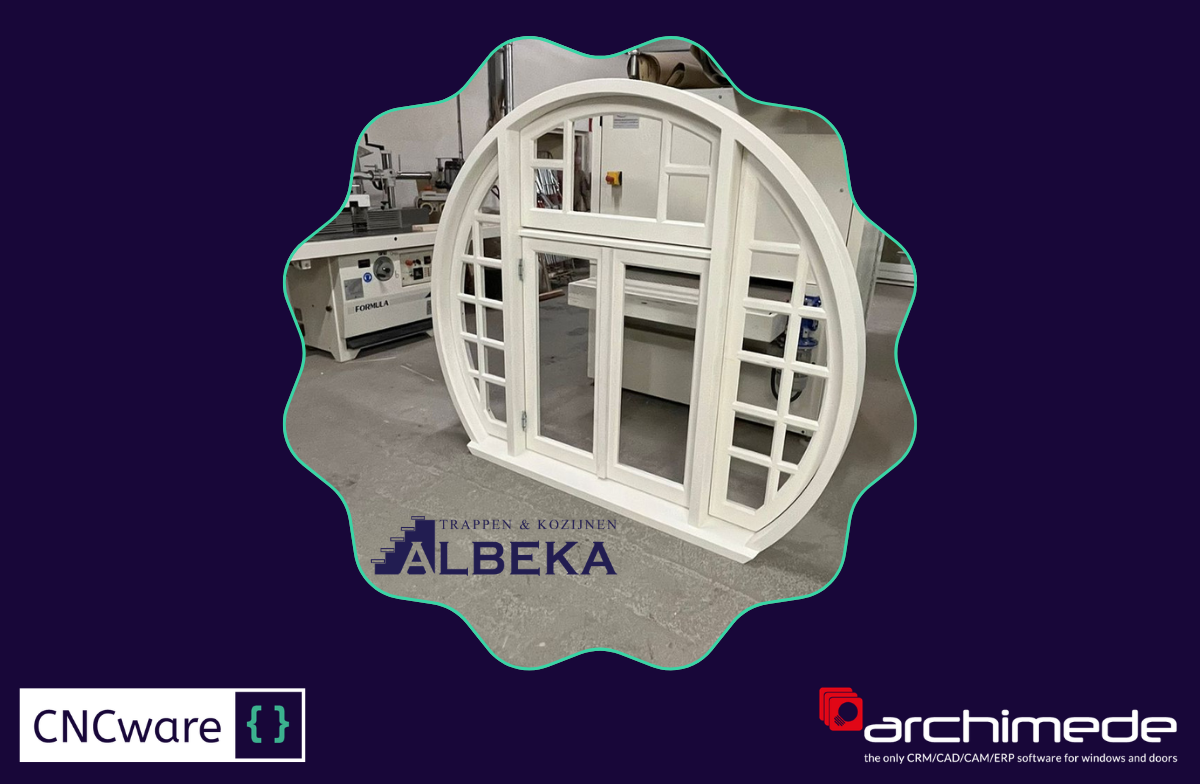 Op de foto zie je een rond kozijn dat volledig is getekend en uitgewerkt in Archimede door Albeka Trappen & Kozijnen te Assen. Dit is geen standaard kozijn: ronde vormen, veel vakverdelingen, verschillende verbindingen en scherpe toleranties. Dรกt type uitdaging laat echt zien wat er technisch mogelijk is.